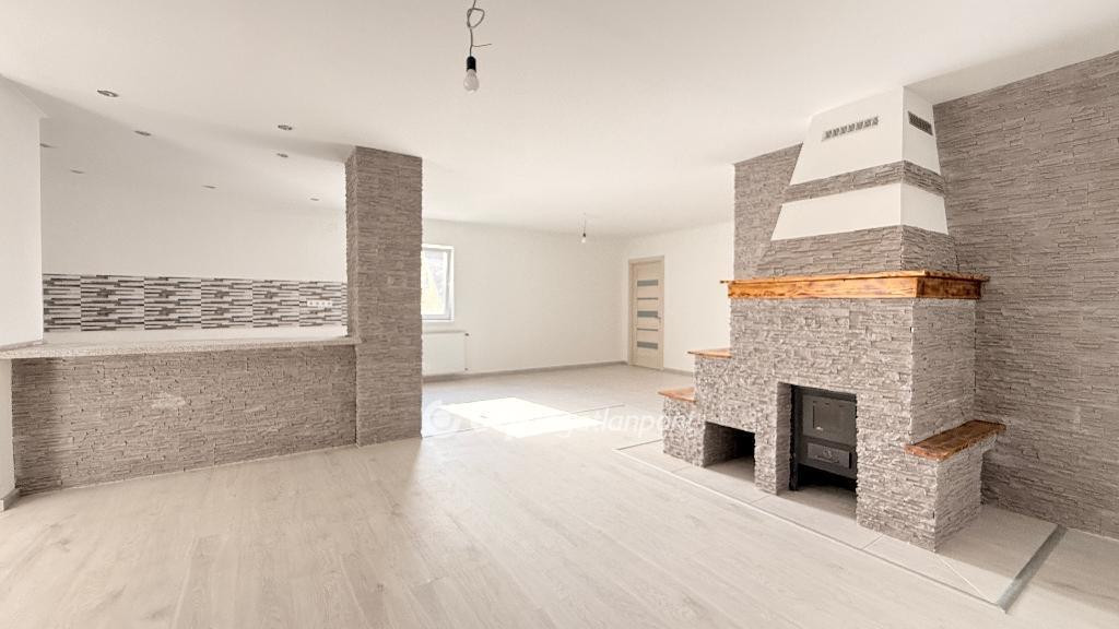 Az ingatlanban 3 szoba, nagyméretű amerikai- konyha, fürdőszoba, előszoba, kamra, és kazánház található. Jó elosztású, tágas világos terek jellemzik a belső kialakítást.