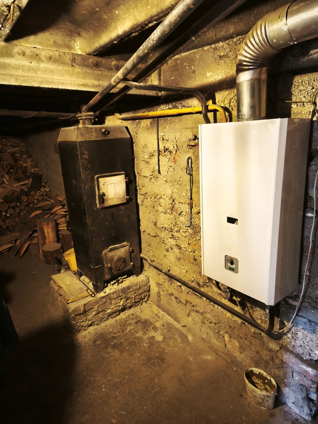 Fűtés: gázcirkó + vegyes tüzelésű kazán