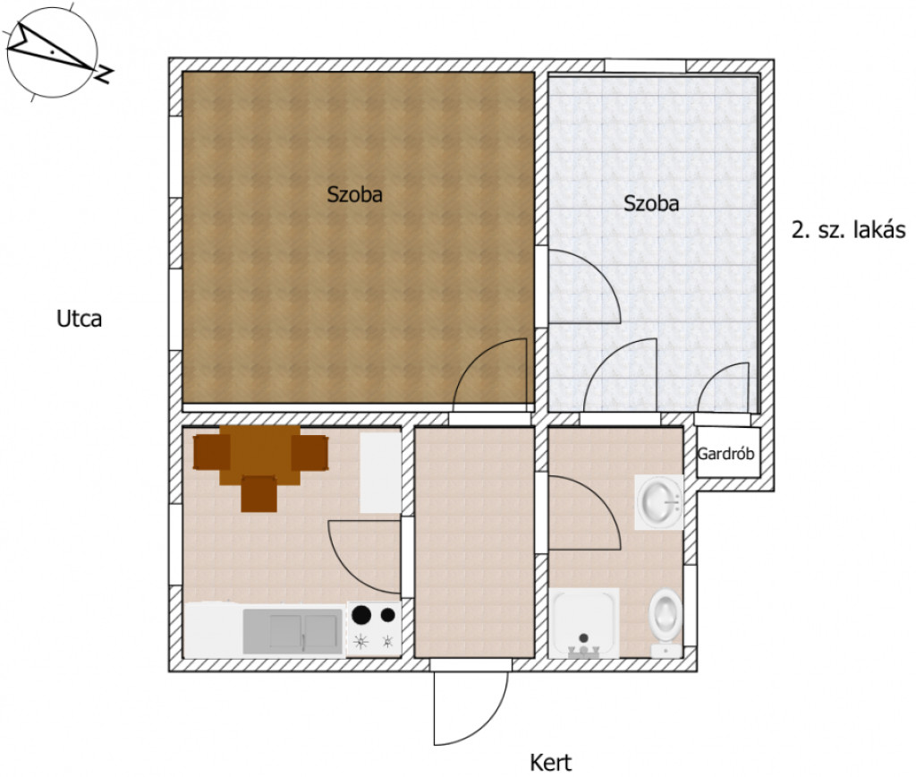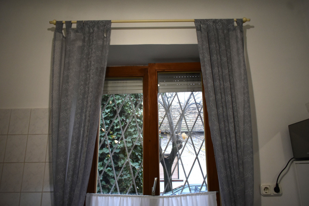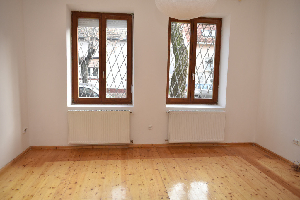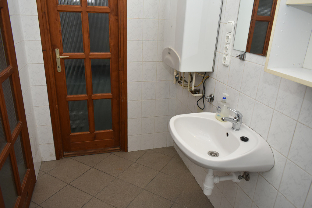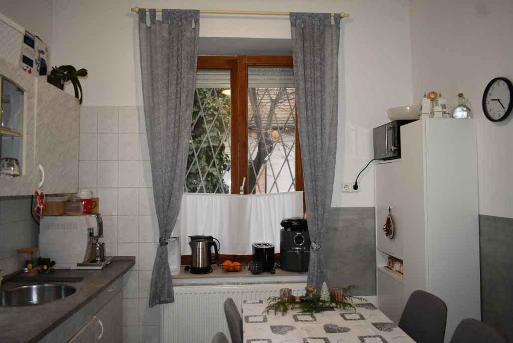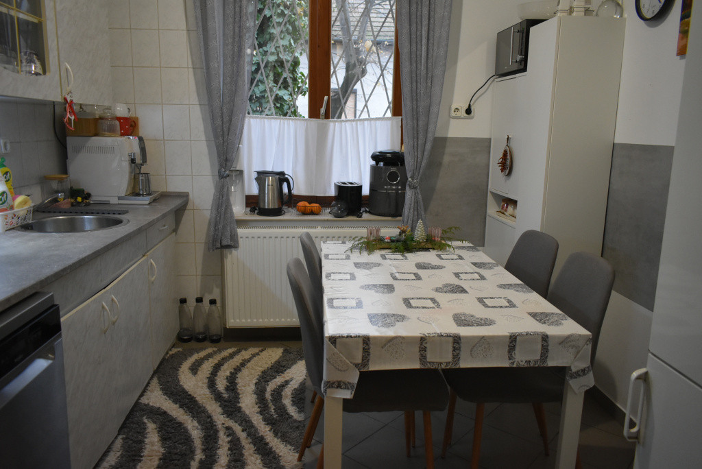 A szobák külön bejáratúak. A nagyobb szoba burkolata gyönyörű hajópadló, a kisebb szoba szőnyegpadlós. A konyha ablakos, étkezős. A fürdőszoba zuhanyzós. A nyílászárók hőszigeteltek.