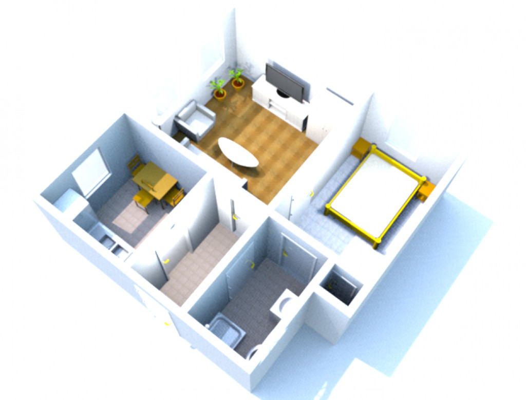 A lakás egy 3 lakásos ház első lakása. A másodikban egy egyedülálló fiatal nyugdíjas férfi, a harmadikban egy házaspár lakik. A lakáshoz saját, elkülönített kertrész tartozik.