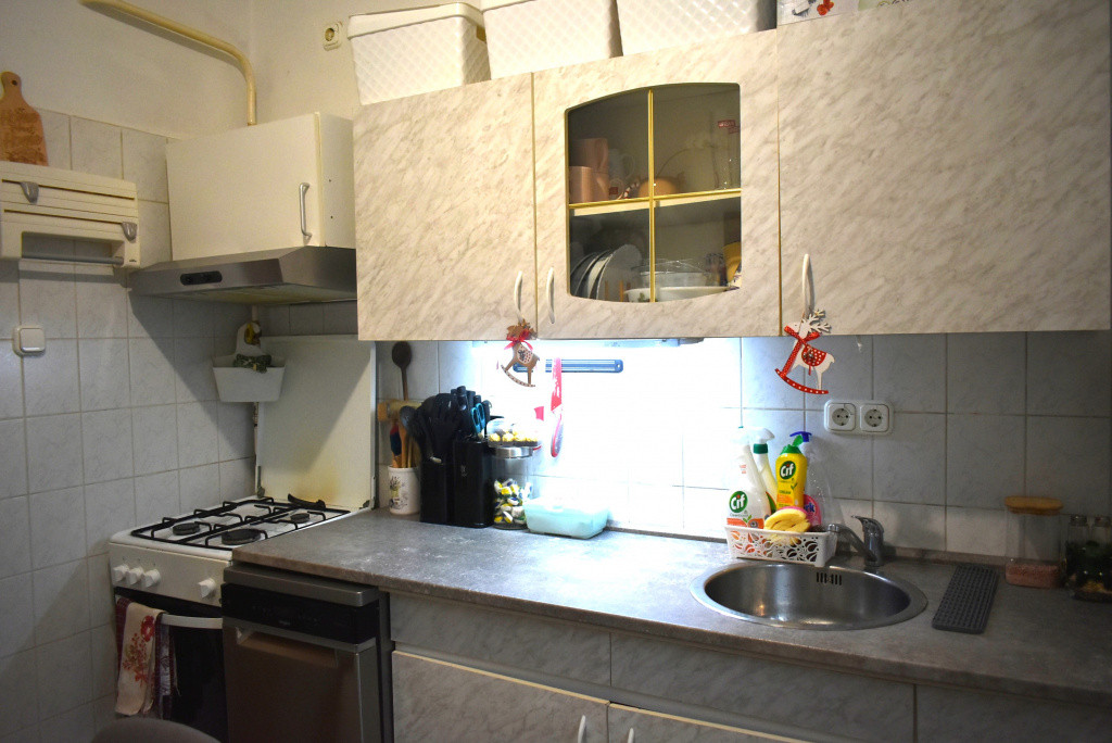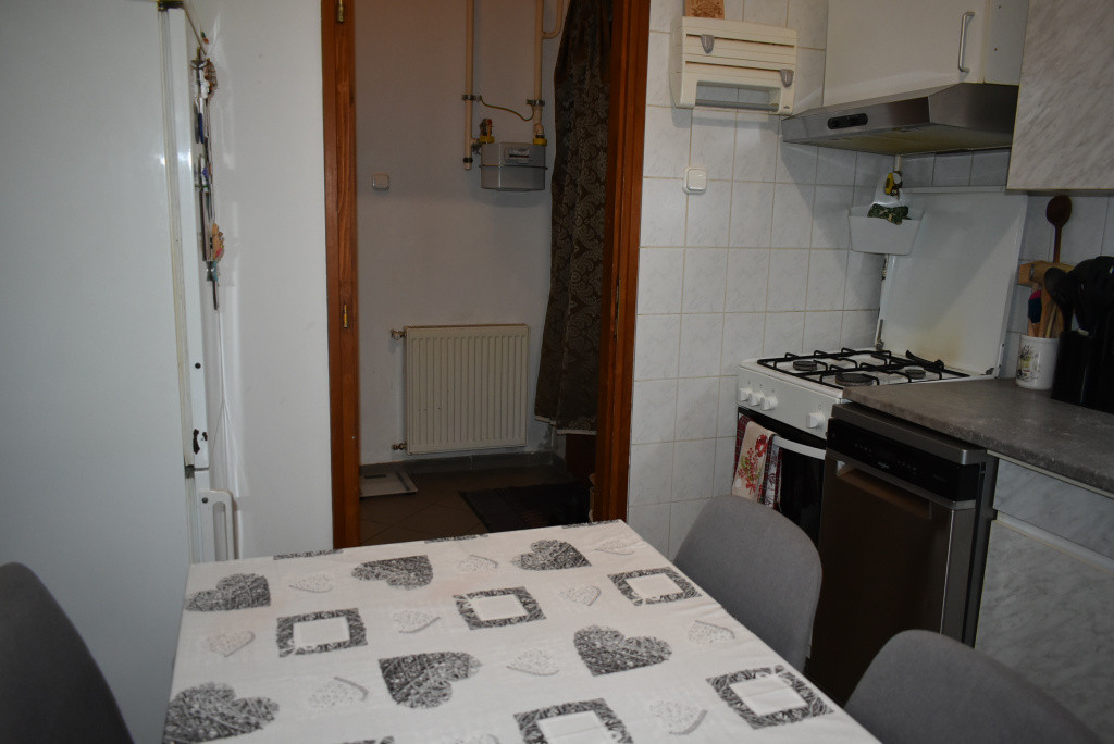 A lakás fűtését és a meleg vizet kondenzációs kazán biztosítja . Konyhabútor, gáztűzhely és hűtőszekrény van a lakásban.