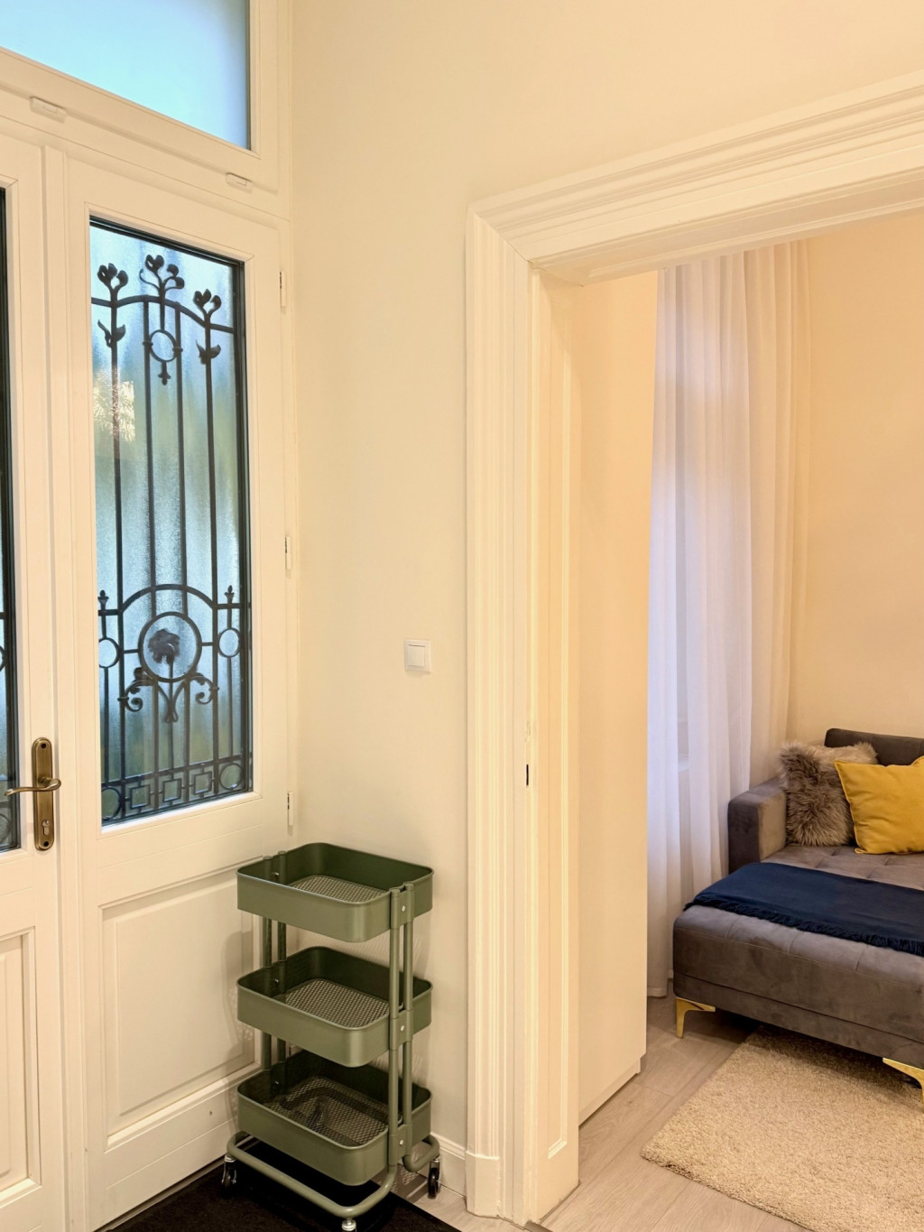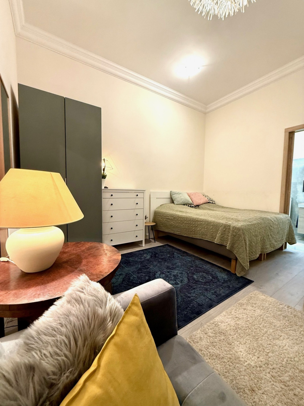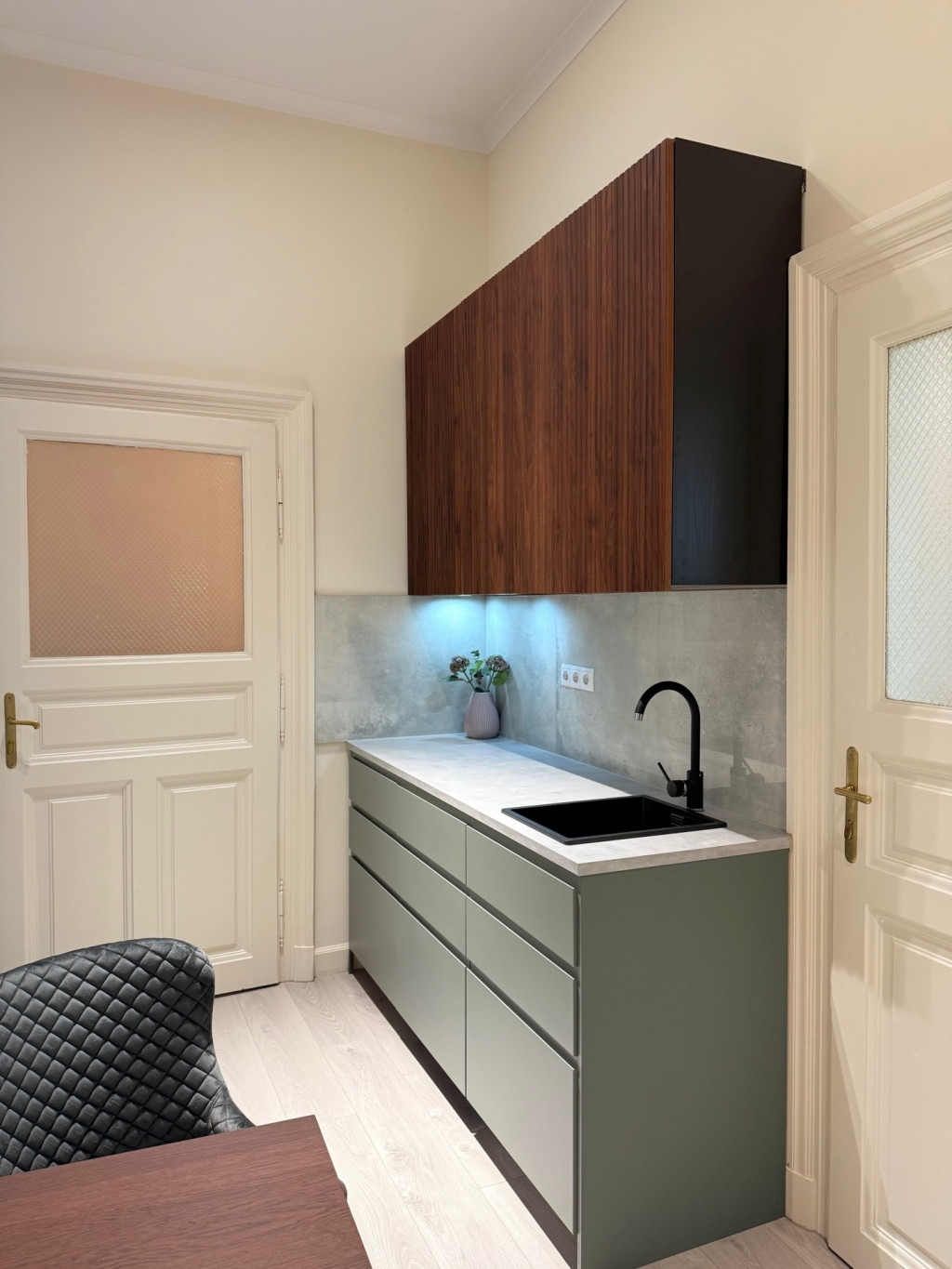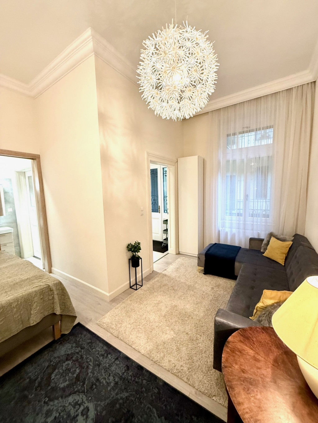 A lakás magas minőségű designnal és bútorokkal rendelkezik, háromrétegű üveggel ellátott, egyedileg gyártott fa nyílászárókkal, prémium burkolatokkal és szaniterekkel. Hansgrohe csaptelepek, 14 mm-es fa parketta és 3,7 méteres belmagasság teszi igazán tágassá és elegánssá a stúdiólakást. Csendes, mégis központi elhelyezkedés, kiváló lakóközösséggel és karbantartott házzal.