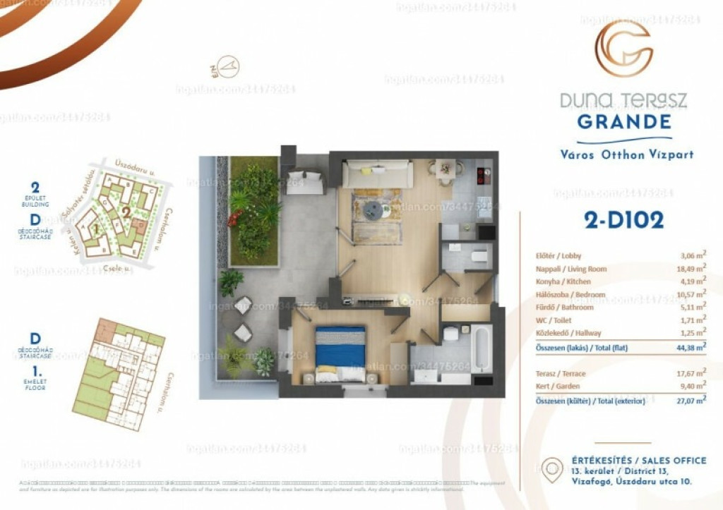 A XIII. kerületben, a Marina parton, a Duna Terasz Grande lakóparkban, egy 1.emeleti, 2 szobás, 45 m2-es lakás KIADÓ. A környék biztonságos, rendezett, közel a Duna parthoz.